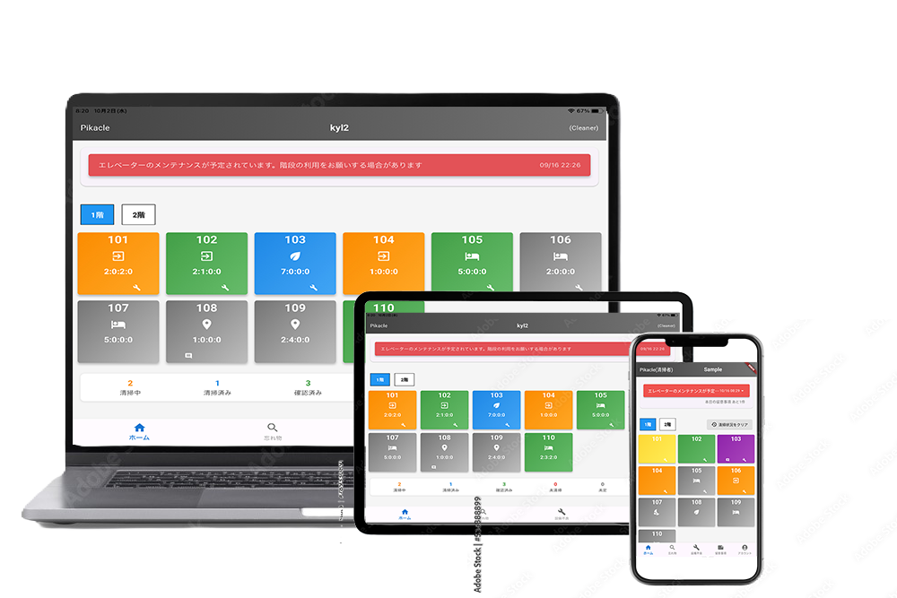 フロントは、客室の清掃状況や空室状況を瞬時に確認でき、部屋割りやチェックインがスムーズに進行します。
